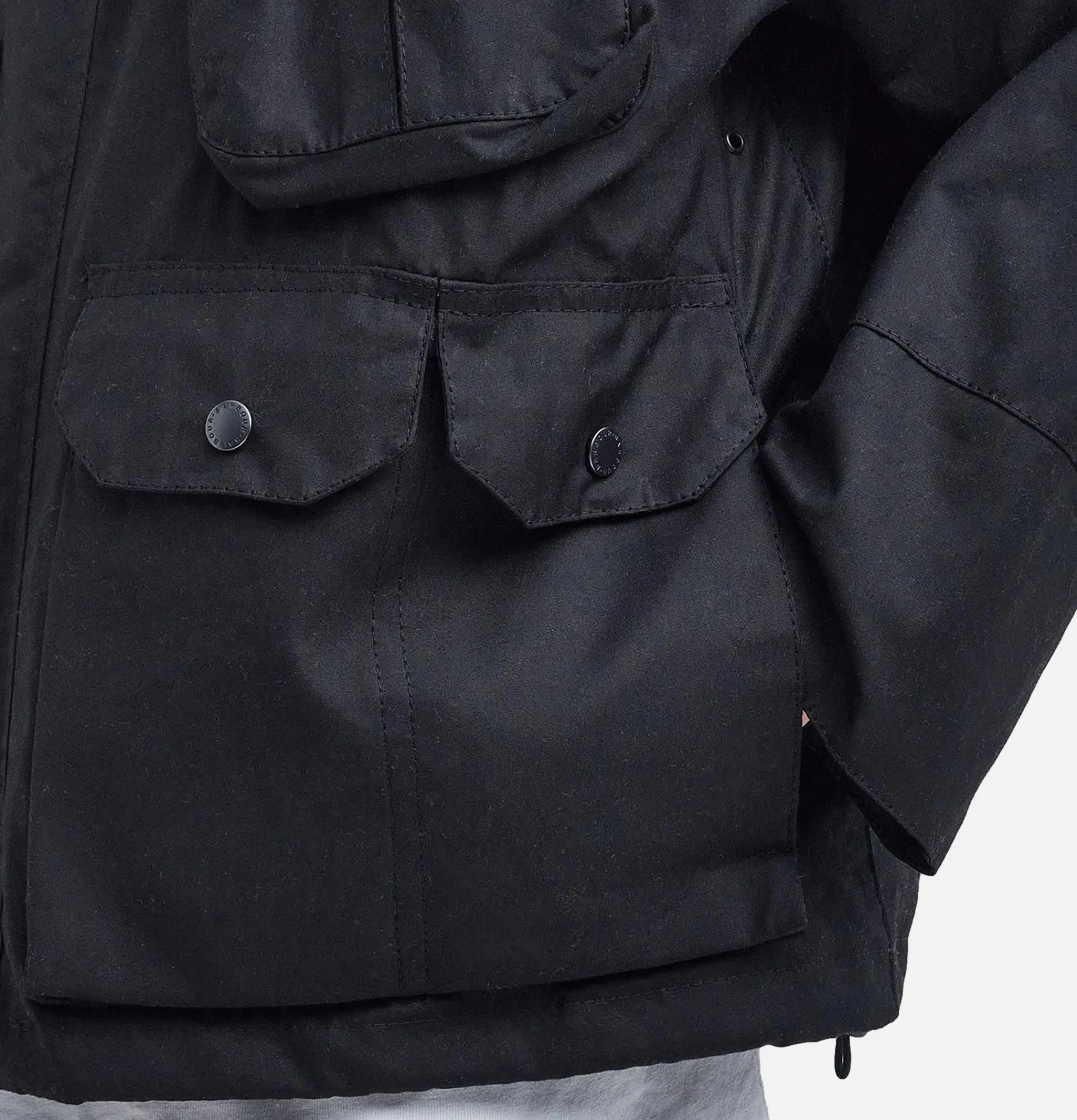 - No external branding, Barbour badge in right pocket