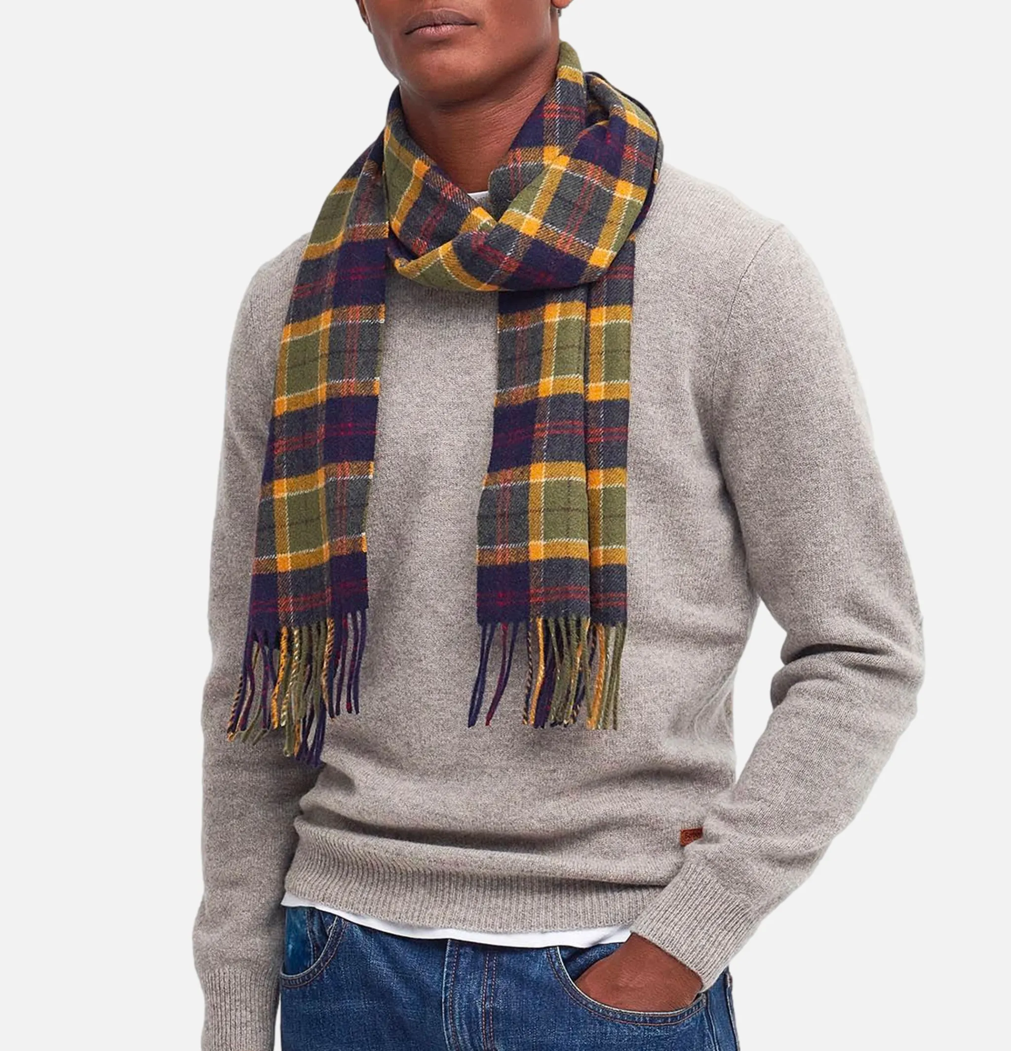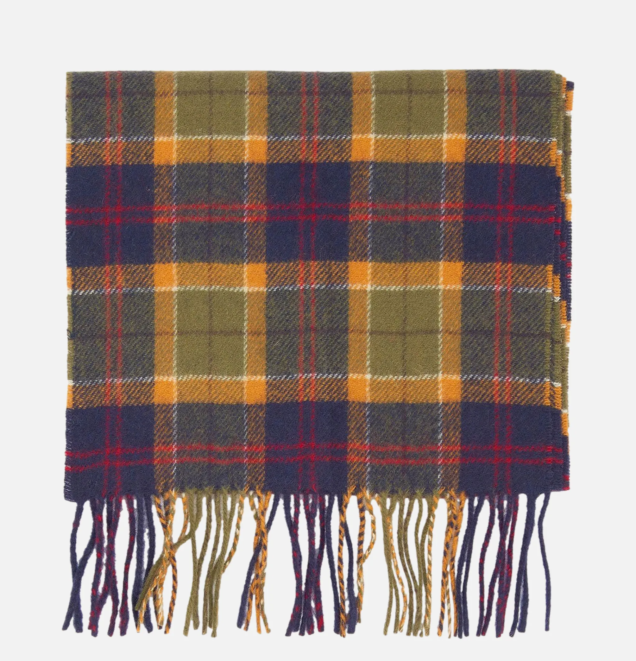Barbour Scarf Lambswool Tartan Green Navy Ocre