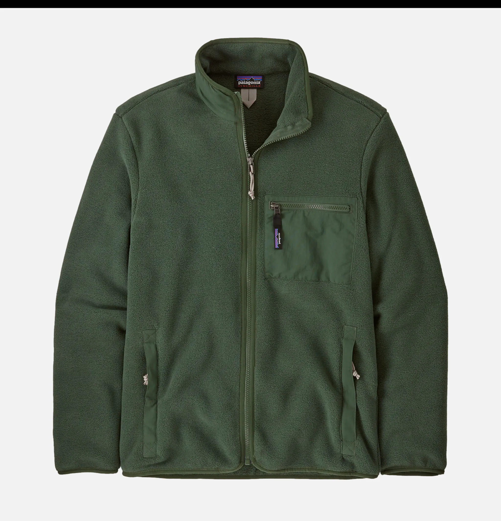 - Warm jacket with full-length front zip and stand-up collar Zippered patch breast pocket on left side and two welt front pockets