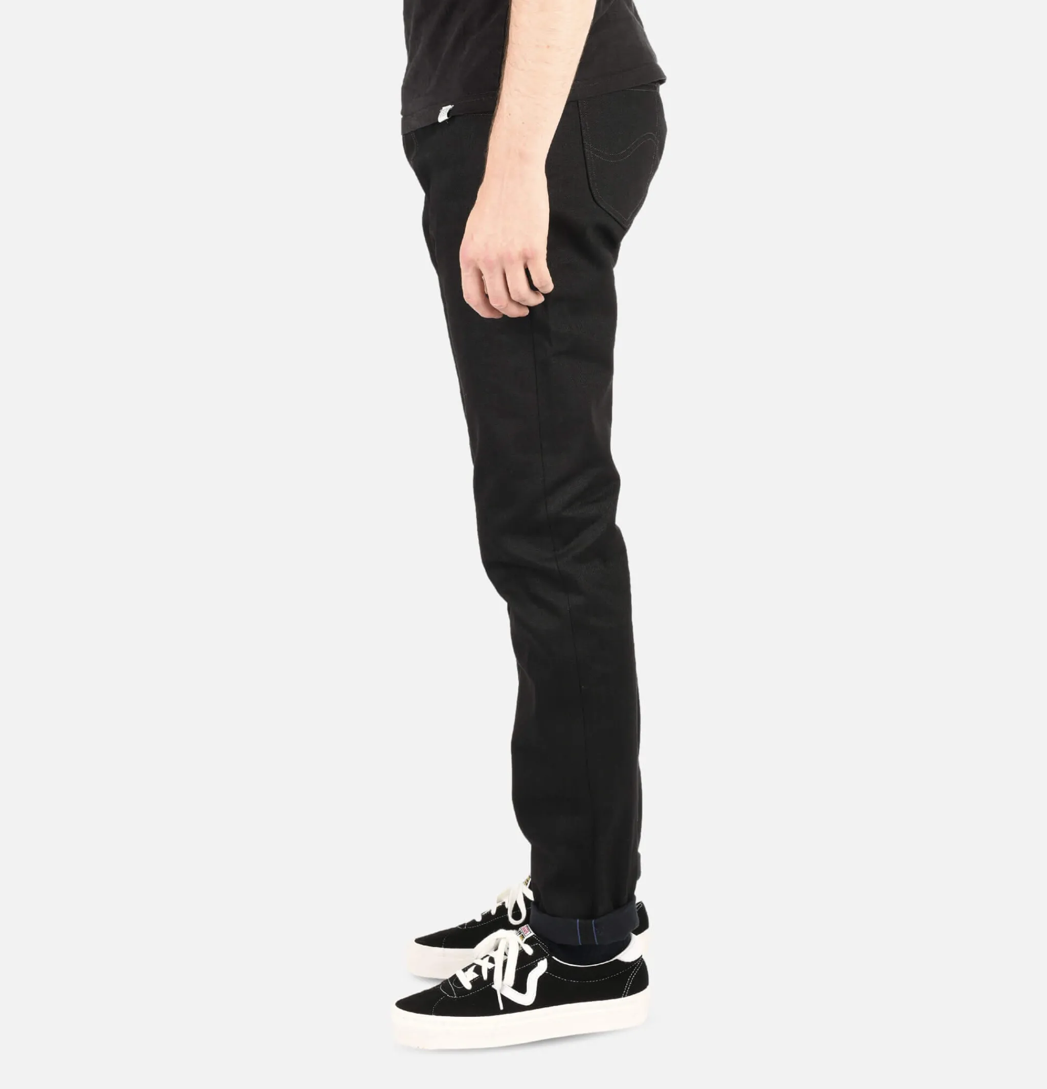 Jean Lee 101 Rider Jean New Dry is based on a vintage Lee® block from the ‘60s. Yarn dyed black right hand twill denim with blue selvedge