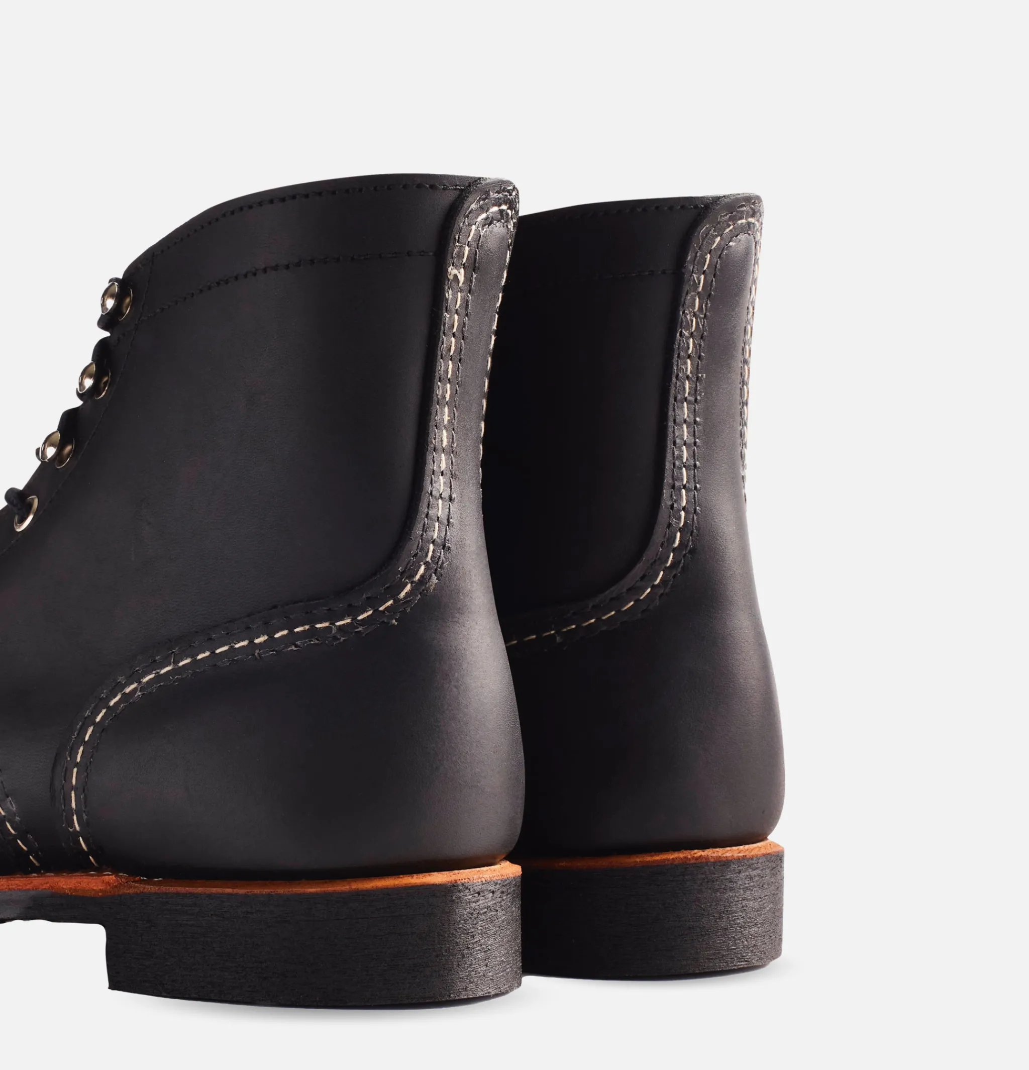 Red Wing Shoes 8085 Iron Ranger Black Harness. Built for comfort and security to its owner, the Iron Rangers has a double layer of leather on the front and heel. The combination of metal eyelets and hooks provides optimum support.